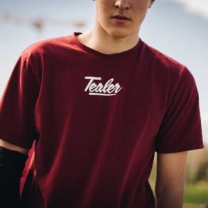 חולצת טי שירט עם רקמת כיתוב בחזית.